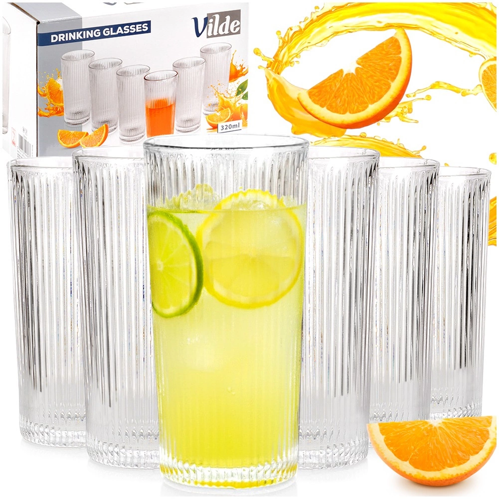 De verticale ribbeling geeft de glazen een elegante uitstraling en zorgt voor een zekere grip, zelfs bij gekoelde dranken met ijs.