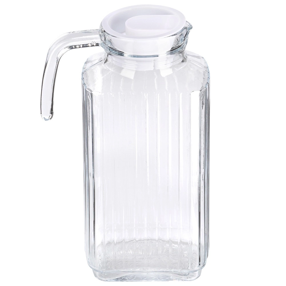Inclusief een wit kunststof deksel dat de drank beschermt tegen vuil en insecten, terwijl de gevormde tuit en de ergonomische greep zorgen voor schoon en precies schenken zonder druppels. De kan is ideaal voor water, sappen, limonade, ijsthee of compote en is geschikt voor familie-etentjes, tuinpicknicks en ontmoetingen met vrienden.