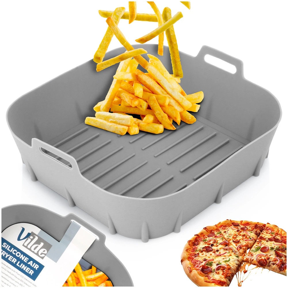 De siliconen inzet voor de airfryer is ideaal voor gezonder en schoner koken. Hij voorkomt direct contact van het voedsel met de friteusemand, zodat er binnenin geen resten en vet achterblijven. Het antiaanbakoppervlak vereenvoudigt zowel serveren als onderhoud; het materiaal is veilig voor contact met voedsel en beïnvloedt de smaak niet.