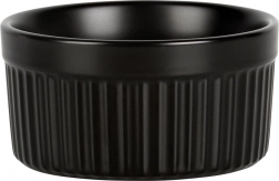 Mat zwart met een geribd design komt prachtig tot zijn recht bij het serveren van desserts, snacks en sauzen – van keuken tot tafel.