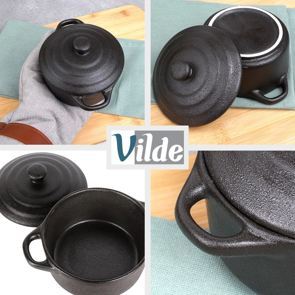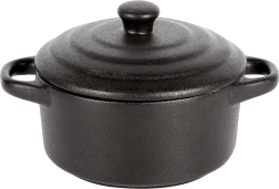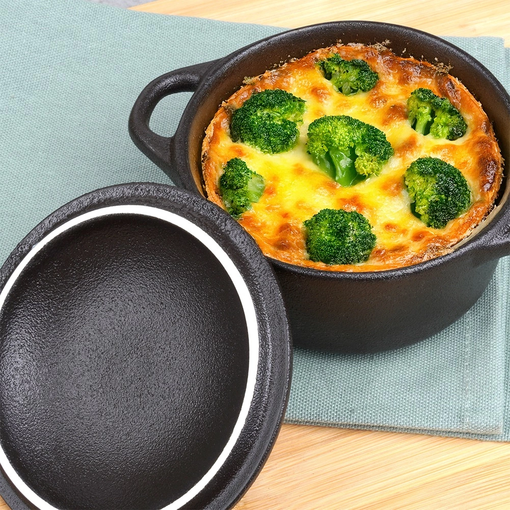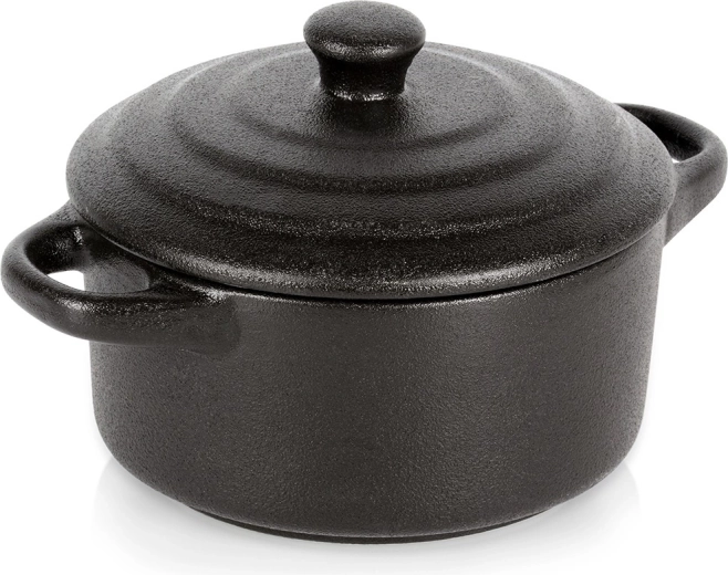 Dankzij de compacte afmetingen is het ideaal voor het bereiden van individuele porties en ook uitstekend geschikt om olijven, noten of groenten te serveren. Twee praktische handgrepen zorgen voor veilig dragen, terwijl de deksel gerechten beschermt tegen uitdroging en verlies van aroma.