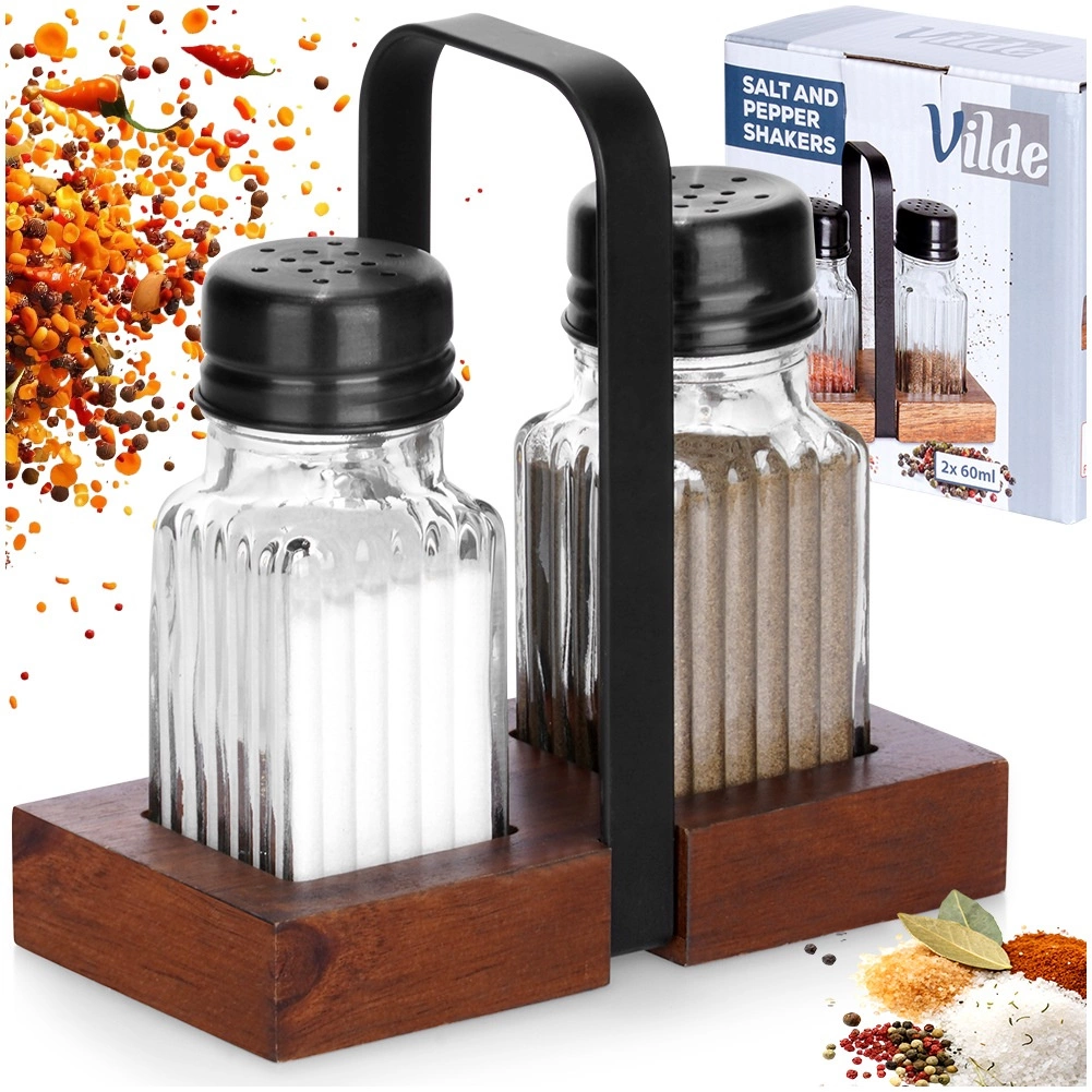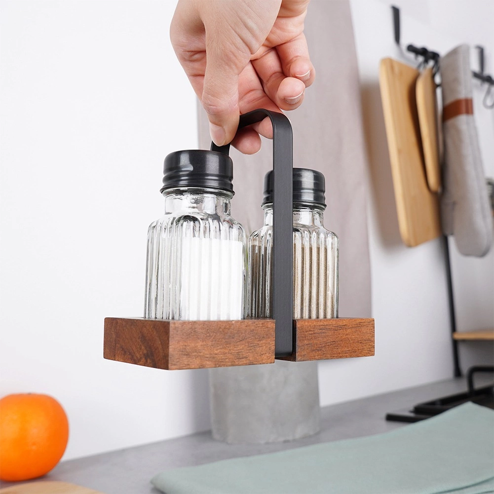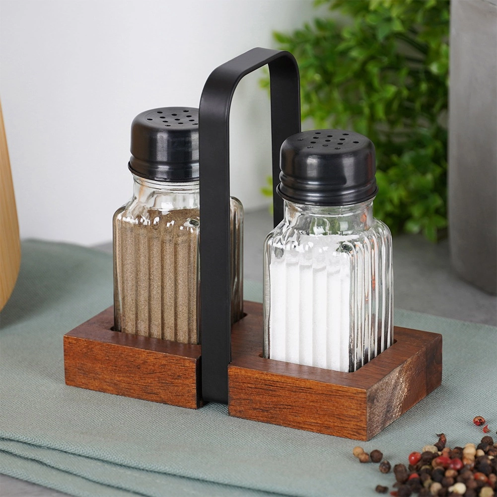 De houder van acaciahout houdt de strooiers altijd binnen handbereik en geeft zowel de eettafel als de keuken een tijdloze, klassieke uitstraling. De set is ideaal voor thuis koken en voor de horeca – van voorbereiding in de keuken tot serveren aan tafel.