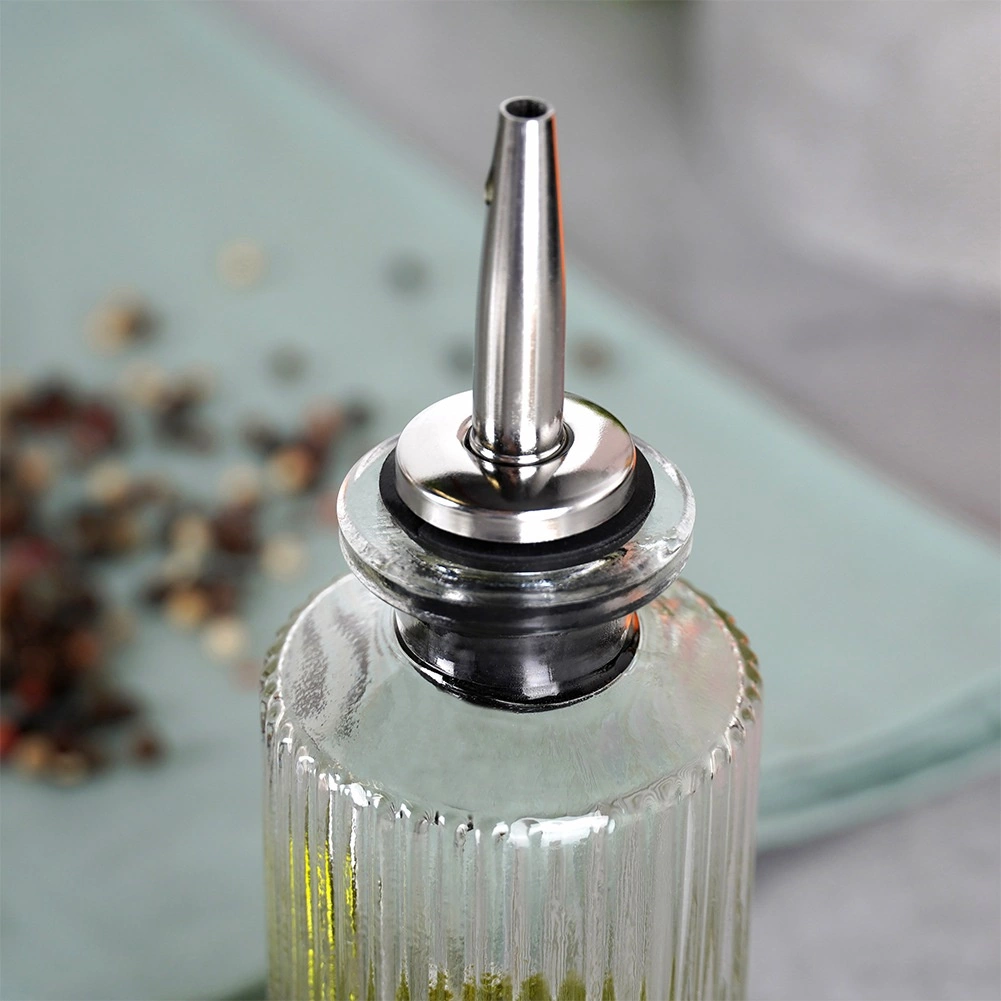 Deze compacte glazen fles van 160 ml is een perfecte keuze voor dagelijks op smaak brengen en elegant serveren aan tafel. Het heldere, hoogwaardige glas met een geribde textuur accentueert de kleur en helderheid van de inhoud, terwijl de roestvrijstalen schenksluiting met siliconen zorgt voor nauwkeurige dosering zonder druppelen of knoeien.