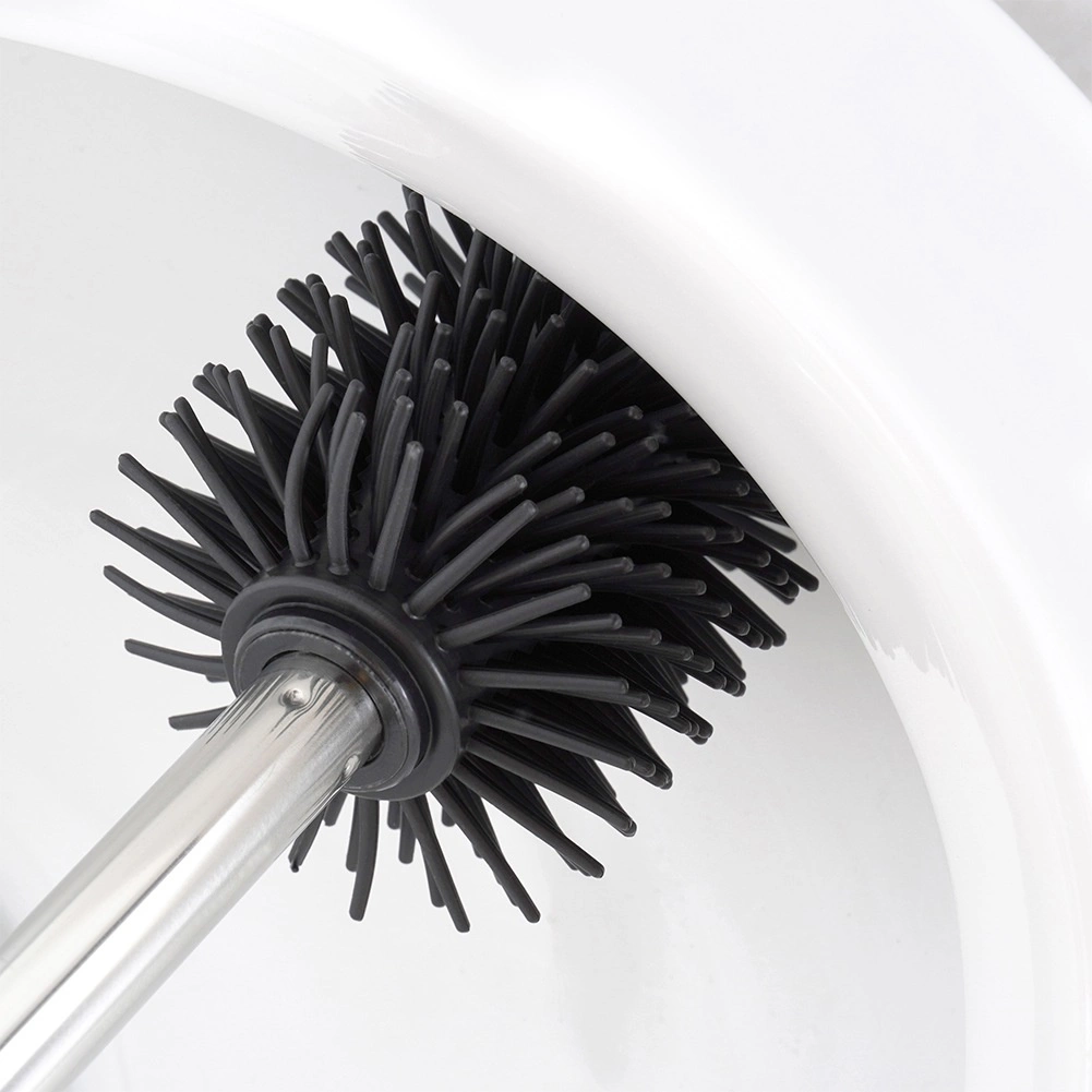 Deze vervangende siliconen WC-borstel is een ideale keuze voor een schone en zorgeloze toilethygiëne. Zwarte siliconen haren ogen elegant, geven niet af en zijn gemakkelijk schoon te houden. De afschroefbare kop maakt eenvoudige vervanging mogelijk na langere tijd om hygiënische redenen.