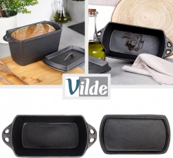 Onderhoudstip: Was na elk gebruik, droog grondig en olie licht in om roest te voorkomen (natuurlijk bij gietijzer). De vorm heeft geen anti-aanbaklagen zoals teflon – met goed onderhoud behoudt hij een lange levensduur en uitstekende bak-eigenschappen. Origineel product van het merk VILDE uit de CAST LINE-lijn.