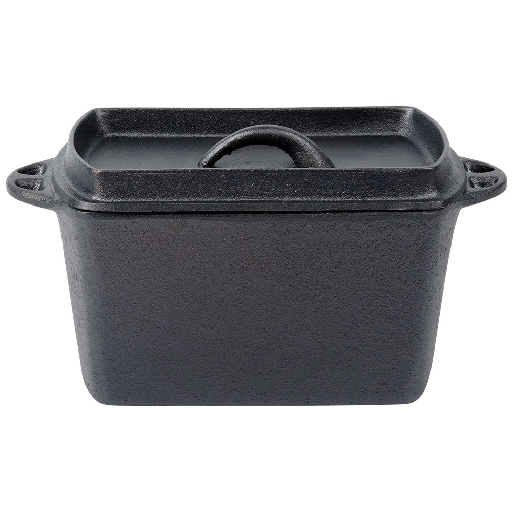 Deze massieve gietijzeren vorm met precies passend deksel is ideaal voor thuis en professioneel bakken. De rechthoekige vorm helpt de perfecte vorm van toastbrood, patés en ovenschotels te behouden. De gietijzeren constructie zorgt voor een gelijkmatige warmteverdeling en een stabiele temperatuur gedurende het hele bak- en stoofproces.