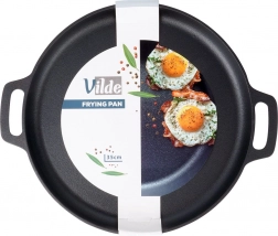 Robuste ronde gietijzeren pan met een diameter van 35 cm en twee handgrepen, ideaal voor bakken, braden en stoven op het fornuis, op de grill en in de oven. Gietijzer zorgt voor een egale warmteverdeling en lange warmteretentie, zodat je steak, aardappelen, pizza en groenten altijd perfect bereiden. Geschikt voor gas, elektrisch, keramisch, halogeen en inductie. Bewezen kwaliteit van het merk VILDE uit de CAST LINE-serie.