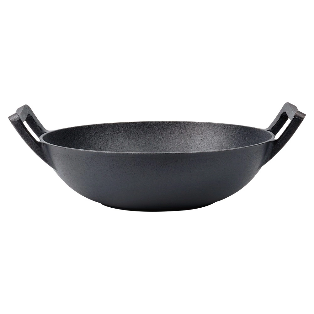 Ontdek de kracht van gietijzer bij het bereiden van stir-fry, noedels, vlees en groenten. Het diepe, brede profiel van de wok maakt intensief bakken en snel roerbakken gemakkelijk, terwijl de massieve wanden warmte uitstekend opslaan voor sappige resultaten. De pan heeft geen antiaanbaklagen – ideaal voor liefhebbers van degelijk kookgerei en een natuurlijke patina.