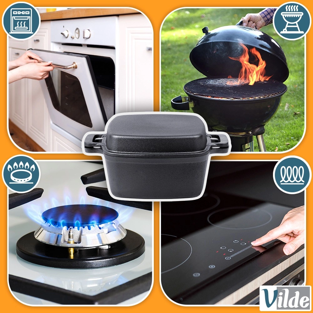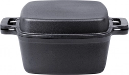 Ontdek de praktische oplossing voor elke keuken: een gietijzeren pan met 2-in-1 deksel, waarbij het deksel dient als ondiepe pan of ovenschaal. Dankzij de gelijkmatige warmteverdeling worden gerechten sappig, mals en vol van smaak. Robuust zwart gietijzer garandeert een lange levensduur en consistente prestaties bij dagelijks koken.