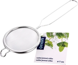 Praktische keukenzeef met een diameter van 7 cm van hoogwaardig roestvrij staal, met lange handgreep en steunhaak. Het fijne, dichte gaas houdt ook de allerkleinste deeltjes betrouwbaar tegen. Ideaal voor thee zeven, bloem zeven, bestrooien met poedersuiker of bouillon zeven. Eenvoudig te onderhouden, geschikt voor de vaatwasser.