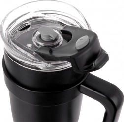 Het transparante deksel met hoogwaardige afdichting heeft een afsluitbare drinkopening en een aparte opening voor het metalen rietje met siliconen afsluiting. De ergonomische handgreep voor een comfortabele grip maakt dragen en drinken onderweg gemakkelijk. Voor het beste resultaat vul tot ca. 90% en spoel de beker voor gebruik met heet of koud water.