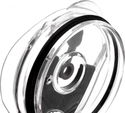 Het transparante deksel heeft een afsluitbare drinkopening en een aparte opening voor het metalen rietje met siliconen stop. Minimaliseert morsen en verhoogt het drinkcomfort.