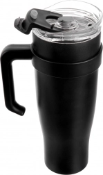 De stevige handgreep zorgt voor een zekere grip, ook bij het volle volume van 1,2 l. Dankzij de versmalde bodem past de beker comfortabel in bekerhouders in de auto. Ontworpen om rechtop vervoerd te worden.