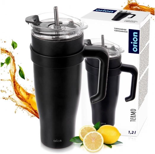 Geniet de hele dag van drinken zonder compromissen. Deze zwarte ORION-thermobeker met praktische handgreep biedt een grote capaciteit van 1,2 l en betrouwbare vacuümisolatie voor langdurige temperatuurbehoud. Dankzij het duurzame roestvrij staal en het doordachte ontwerp is hij perfect voor hete koffie, thee en koude dranken.