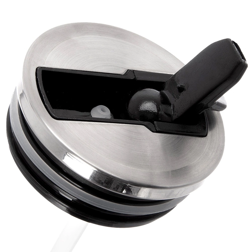 De dop met opklapbaar tuitje en intern rietje maakt drinken mogelijk tijdens het lopen of rijden. Inclusief extra rietje.