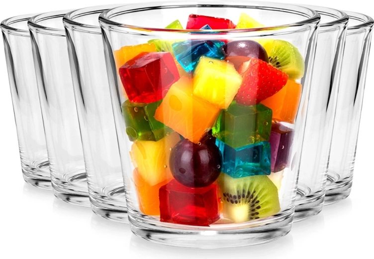 Serveer in stijl panna cotta, tiramisu, puddingen, fruitsalades en kleine voorgerechten. Universele glazen bekers met een inhoud van 180 ml, geschikt voor thuis, bruiloften, catering en kinderfeesten. Het heldere glas laat kleuren, textuur en laagjes van je desserts schitteren.