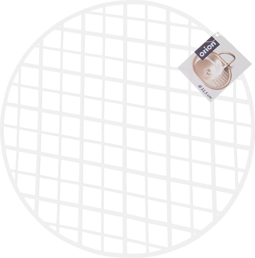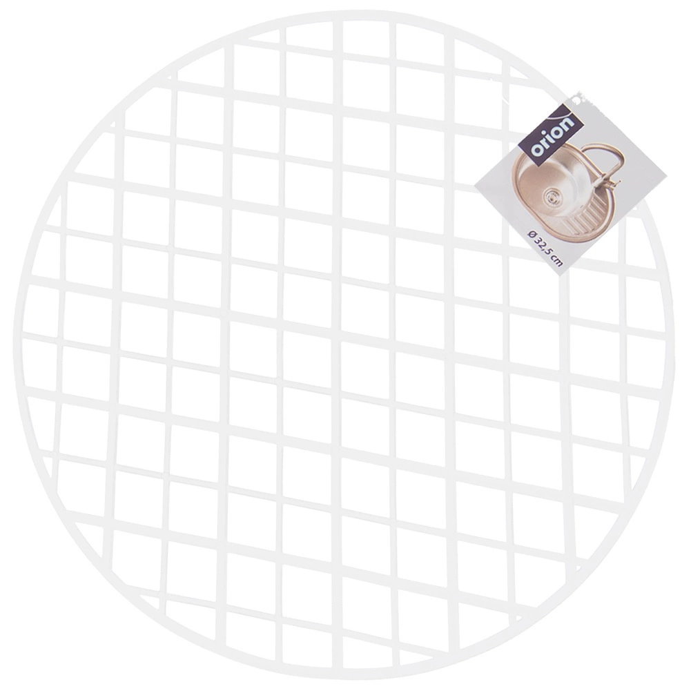 Praktische ronde gootsteenmat met een diameter van 32,5 cm beschermt de bodem van de gootsteen tegen krassen en stoten. Gemaakt van duurzaam plastic, met een antislipoppervlak, perforatie voor vrije waterafvoer en bestand tegen temperaturen tot 80 °C. De universele witte kleur past in de meeste keukens.