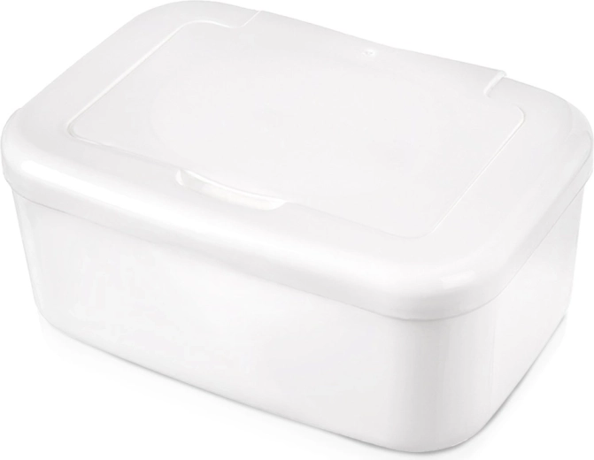Een elegante en functionele oplossing voor de dagelijkse zorg voor kinderen en het huishouden. De dispenser van hoogwaardige, duurzame kunststof in het wit biedt snelle toegang tot de doekjes en beschermt ze tegelijk tegen lucht, zodat ze vochtig en klaar voor gebruik blijven.