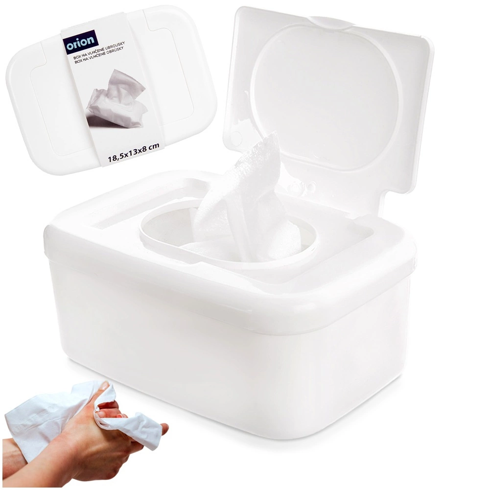 Praktische dispenser voor vochtige doekjes houdt doekjes langer vers en altijd binnen handbereik. Dankzij het sluitende deksel met klep voorkomt hij uitdroging, heeft compacte afmetingen van 18,5 × 13 × 8 cm en een elegant wit design dat past in elk interieur en elke reistas.