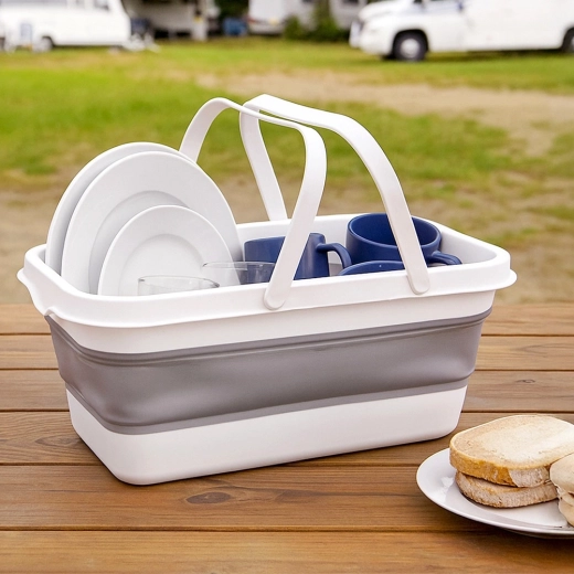Geschikt voor thuis en onderweg: ideaal als wasmand, voor boodschappen, tuingereedschap of als organizer in de auto en garage. De compacte afmetingen ingeklapt maken vervoer naar vakantie, camping of vakantiewoning eenvoudig.
