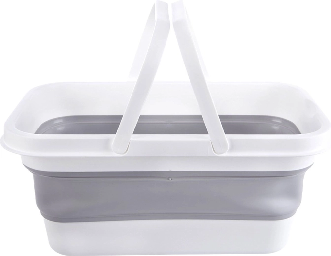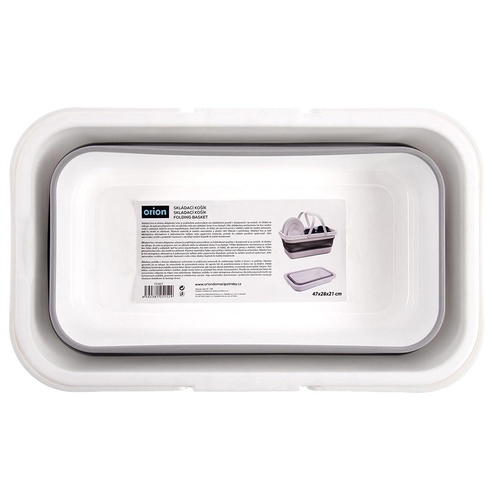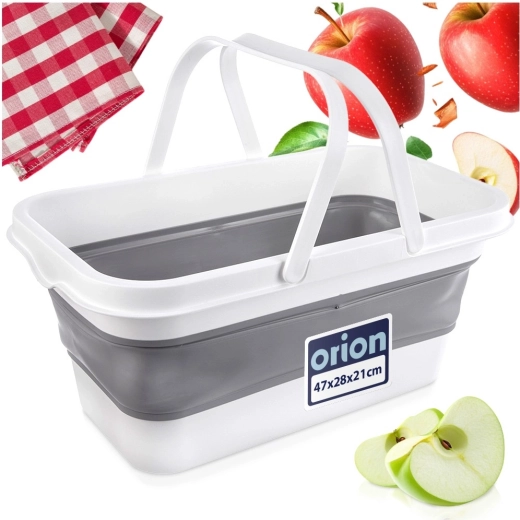 Praktische opvouwbare wasmand met een inhoud van 28 l, voorzien van een verstevigde bodem en comfortabele handgrepen. Dankzij het plat opvouwbare ontwerp bespaart hij ruimte en is hij ideaal voor thuis, in de auto en op reis. Opgevouwen zijn de afmetingen 47 × 28 × 7,5 cm, uitgeklapt 47 × 28 × 21 cm.