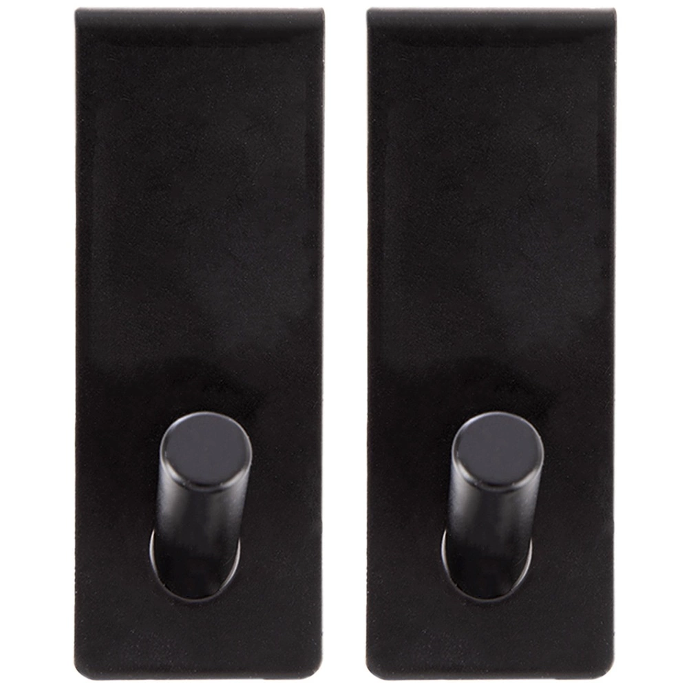 De set van twee RADKA deurhaken maakt het mogelijk de vrije ruimte op deuren, kastdeuren of douchewanden efficiënt te benutten. Gewoon ophangen aan een rand met een dikte tot 2 cm en u heeft meteen plek voor handdoeken, theedoeken, badjassen of lichte kleding. De metalen constructie in een elegante zwarte kleur garandeert een lange levensduur en duurzaamheid.