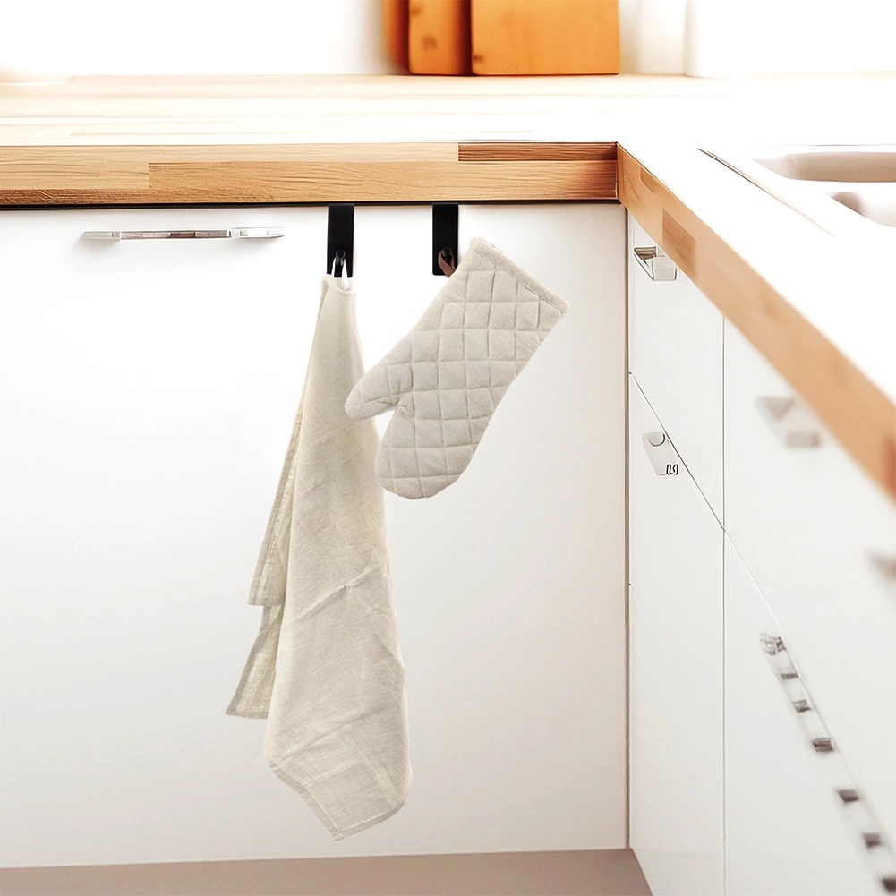 Praktische set van twee metalen deurhaken voor een snelle uitbreiding van de opbergruimte zonder te boren. Elke haak heeft afmetingen van 3 × 5 × 8 cm en past dankzij de zwarte uitvoering in elk interieur. Eenvoudige installatie zonder boren, bescherming van het deurblad dankzij EVA-schuim en universeel gebruik in keuken, badkamer en garderobe maken deze haken tot een uitstekende oplossing voor orde en organisatie.