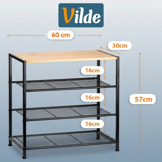 - 4 niveaus opbergruimte – voor efficiënt sorteren en geventileerde opslag van schoenen.