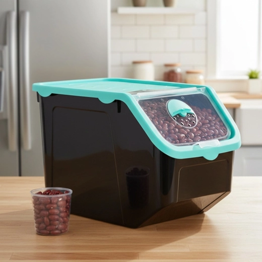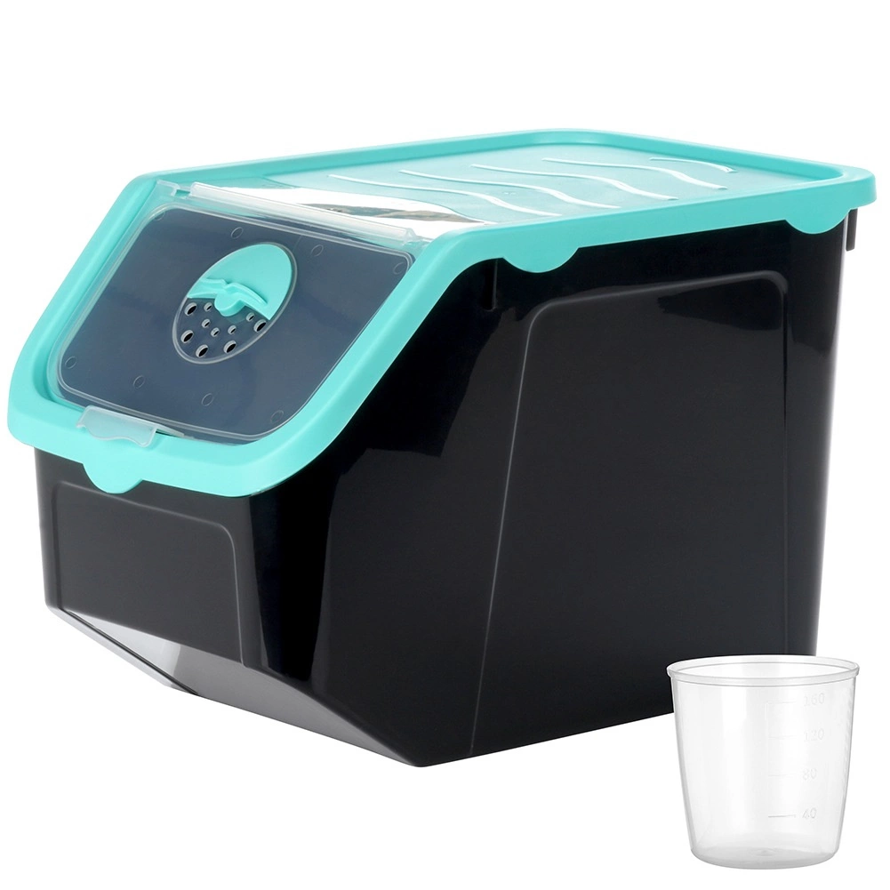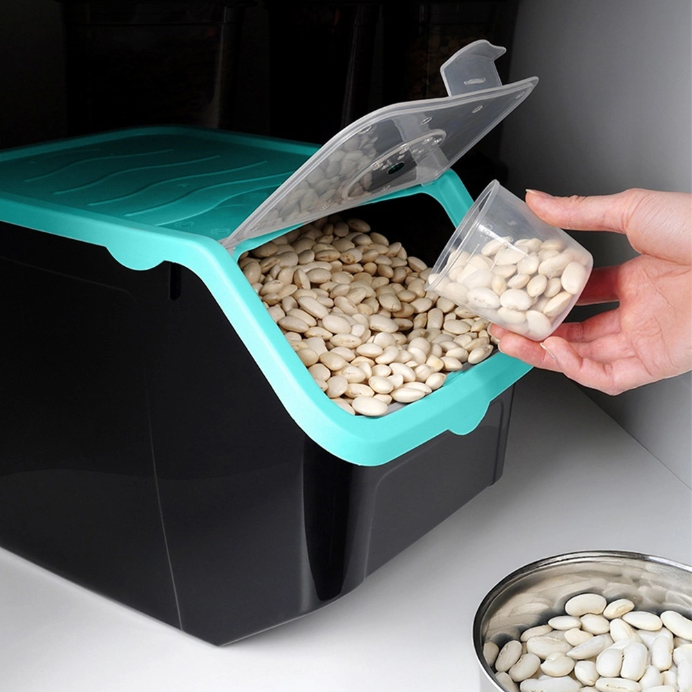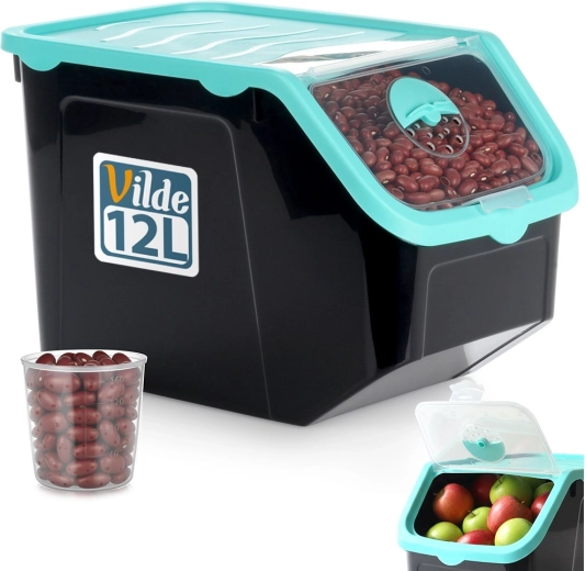 Houd orde in de keuken en verleng de versheid van voedingsmiddelen. Deze ruime voorraadbak is ideaal voor uien, aardappelen, knoflook, fruit en ook voor droge grondstoffen zoals diervoeder of poeders. Dankzij de transparante klep zie je altijd de inhoud en neem je eenvoudig de gewenste hoeveelheid.