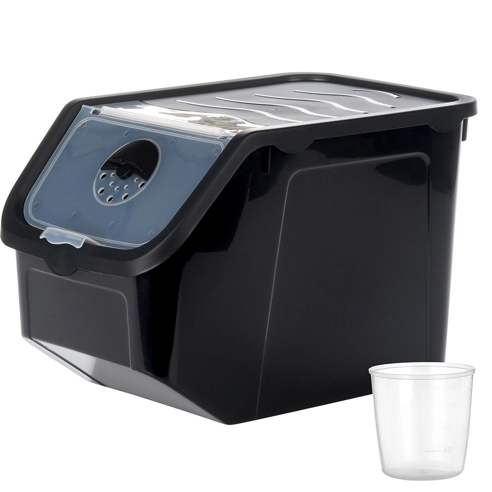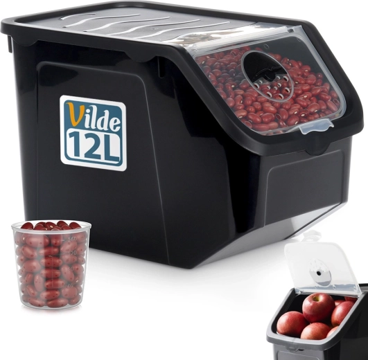 Praktische voorraadbak voor groente en fruit met een inhoud van 12 l en afmetingen 34 × 23 × 23 cm. Heeft een klikbare transparante klep, regelbare ventilatie voor langere versheid en is BPA-vrij. Geschikt voor contact met voedsel, vriezer en vaatwasser, bestand tegen temperaturen van -20 °C tot 100 °C. Inclusief een maatbeker voor nauwkeurige dosering.