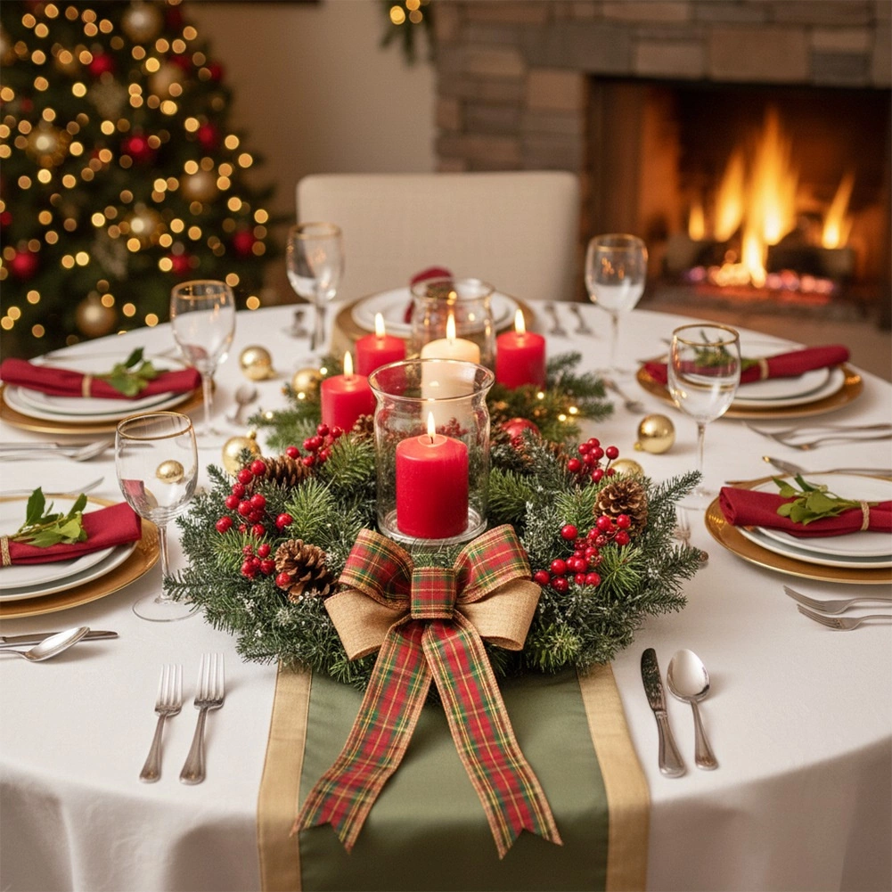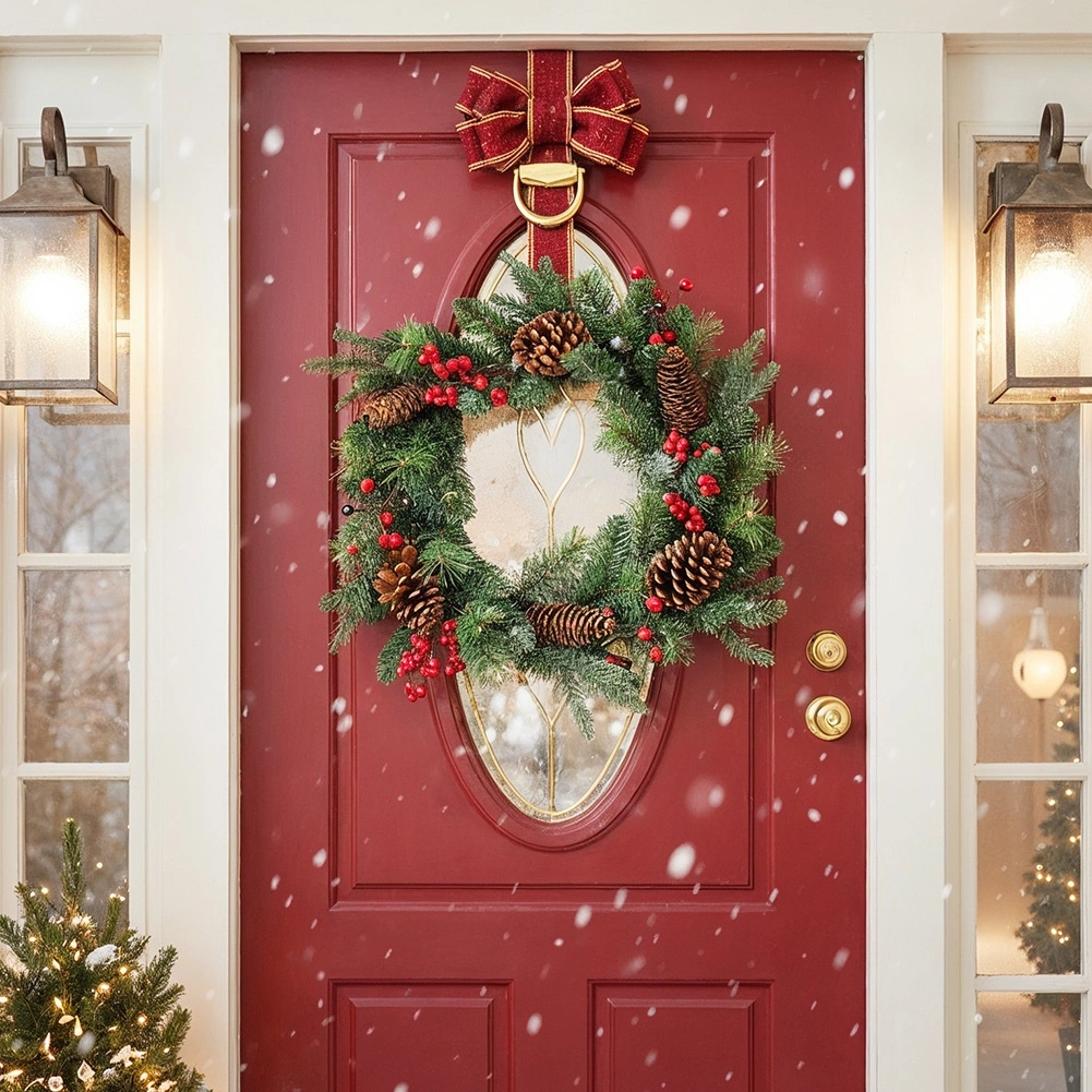 - Rijke versiering – dennenappels en takjes met bessen voor een klassieke kerststijl.