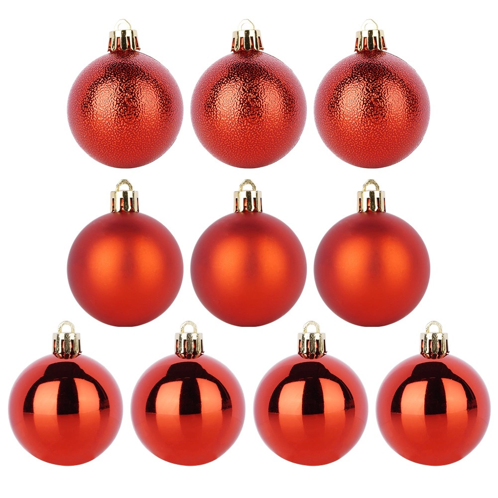 Breng een feestelijke stemming in huis met deze set van 10 onbreekbare kerstballen in elegant rood. De mix van drie afwerkingen – 3× mat, 4× glanzend en 3× met reliëfstructuur – geeft je boom diepte en stijl. Dankzij het duurzame materiaal breken de ballen niet bij een val, ideaal voor gezinnen met kinderen en huisdieren.