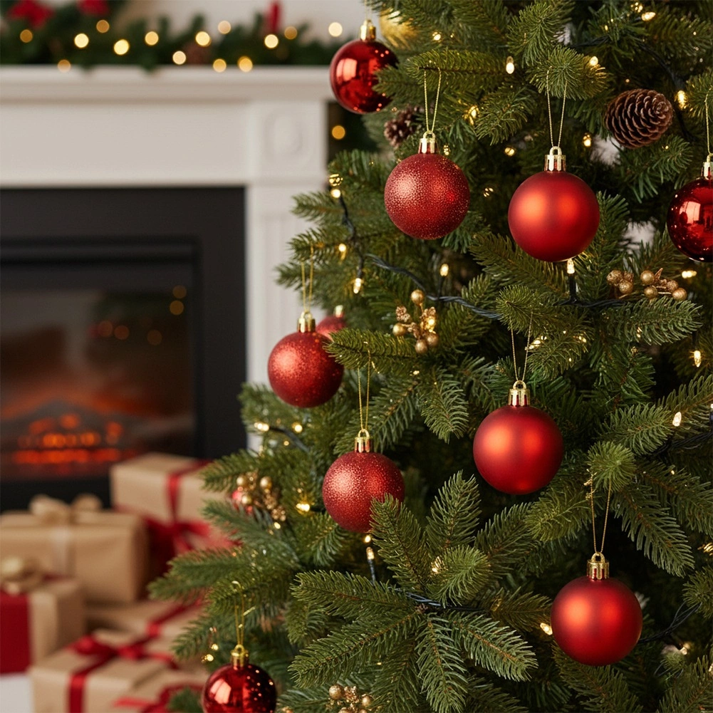 Set van 10 rode kerstballen geeft je kerstdecoratie een klassieke glans en betoverende sfeer. Bevat matte, glanzende en gestructureerde ornamenten met een diameter van 5 cm, perfect voor boom, kransen en feestelijke arrangementen. Gemaakt van onbreekbaar materiaal – veilig voor huishoudens met kinderen en huisdieren.