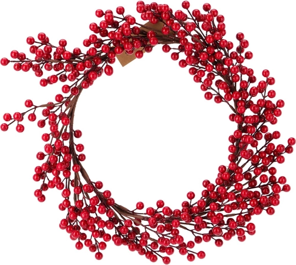 Elegante kerstkrans met een diameter van 50 cm van dichte takjes met kleine hulstbessen is een opvallende feestelijke decoratie voor deur, muur en tafel. Dankzij de duurzame uitvoering behoudt hij zijn kleur en vorm gedurende vele seizoenen. De dieprode tinten laten het interieur meteen stralen en creëren een feestelijke sfeer.