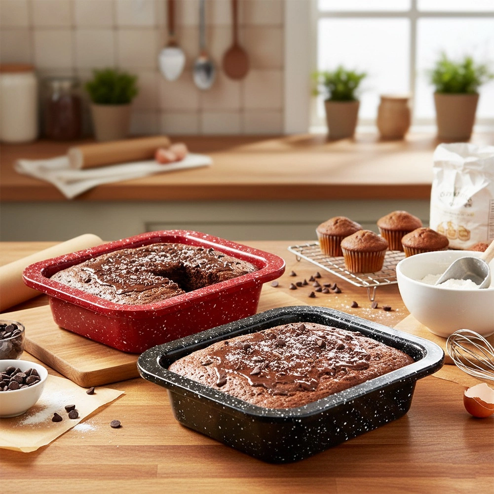 De set van twee compacte vormen past perfect in elke keuken – van snelle desserts tot verfijnde hartige gerechten. Dankzij de granieten antiaanbaklaag plakt het deeg niet en haal je de porties er gemakkelijk uit zonder beschadiging. Koolstofstaal geleidt warmte uitstekend, zodat je kunt rekenen op consistente resultaten bij elke bakbeurt.