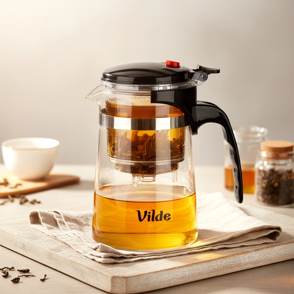 Ontdek een compacte oplossing voor perfecte thee: een glazen theepot met tweefasen-infusie die de smaak maximaliseert en theeblaadjes spaart. De blaadjes trekken in de bovenste kamer, waar je de intensiteit nauwkeurig beheerst. Met één druk op de knop loopt de infusie naar de onderste kan – zonder overgieten en zonder knoeien.