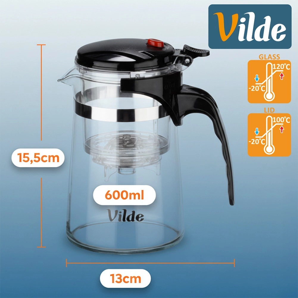 Dankzij borosilicaatglas dat bestand is tegen temperaturen van -20 °C tot 120 °C is de pot geschikt voor warme en koude dranken. De ergonomische greep en precieze tuit maken schenken eenvoudig, en het elegante design staat prachtig op tafel bij dagelijks gebruik en wanneer er gasten zijn.