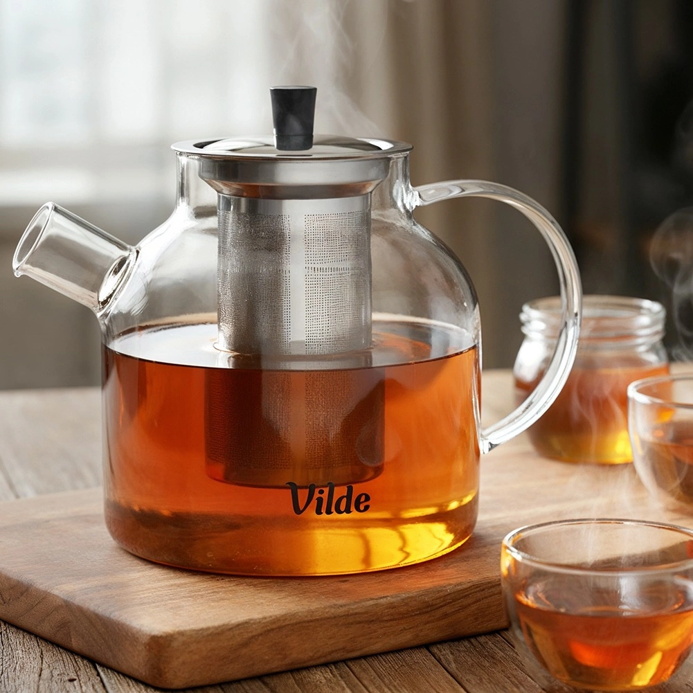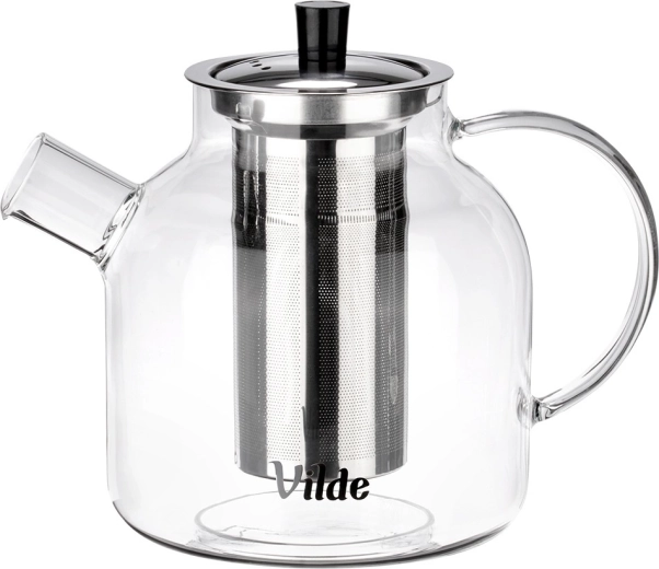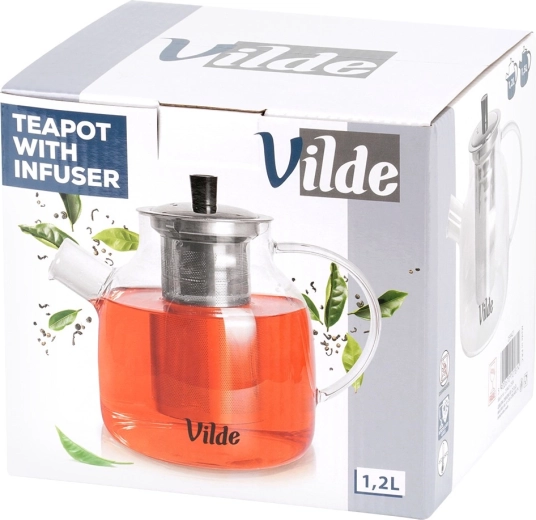 Elegante glazen theepot met een inhoud van 1,2 l en een ingesloten roestvrijstalen infuser voor comfortabel trekken zonder theeblaadjes. Gemaakt van hittebestendig borosilicaatglas en voorzien van een fijn filter voor een kristalheldere infusie. Geschikt voor warme en koude dranken, ideaal voor thuis en op kantoor. Origineel product van het merk Vilde.