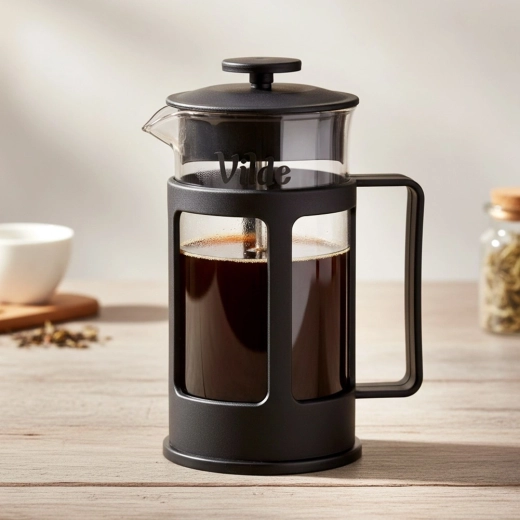 Elegante en duurzame French press voor liefhebbers van filterkoffie en losse thee. De combinatie van borosilicaatglas en een roestvrijstalen pers met fijn filter garandeert een schone infusie zonder onzuiverheden en met volle smaak. De matzwarte behuizing met deksel geeft stijl en veiligheid tijdens het gebruik.