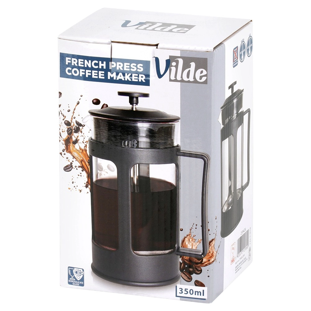 Praktische glazen French press met een inhoud van 350 ml voor het snel bereiden van koffie, thee en kruidenaftreksels. Dankzij het borosilicaatglas en de roestvrijstalen pers met zeef krijg je een heldere, volle drank zonder drab. De ergonomische handgreep en de nauwkeurige schenktuit zorgen voor comfortabel serveren. Ook geschikt voor het opschuimen van melk voor cappuccino of latte.