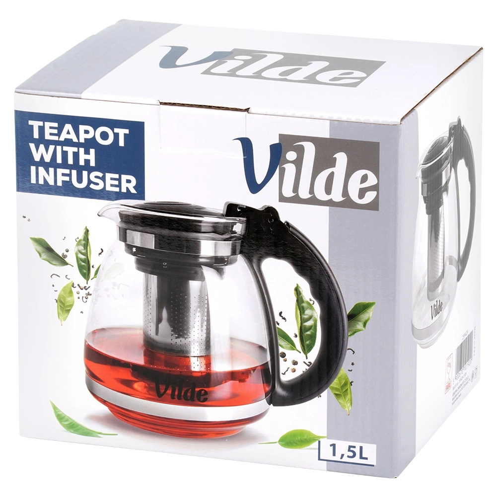 Praktische glazen theepot met filter voor het eenvoudig bereiden van thee en kruidenaftreksels. Dankzij de inhoud van 1,5 l maakt u drank voor het hele gezin. Gemaakt van borosilicaatglas dat bestand is tegen temperaturen van -20 °C tot +100 °C, met een roestvrijstalen infuser met fijne gaatjes, een comfortabele handgreep, een klapdeksel en een praktische schenktuit voor schoon serveren.