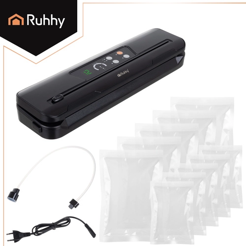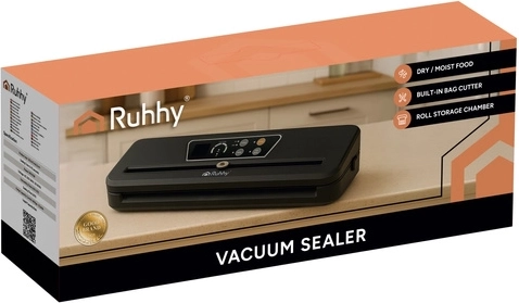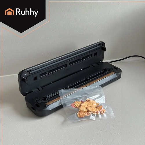 De RUHHY vacuümsealer maakt thuis voedsel verpakken eenvoudig, vermindert verspilling en verlengt de versheid van vlees, kaas, groenten en gemarineerde gerechten. De krachtige vacuümpomp van 80 kPa met 110 W vermogen en een doorstroom van 9 l/min creëert professionele, luchtdichte lasnaden in enkele seconden. Duidelijke LED-indicatoren en eenvoudige bediening zorgen telkens voor een betrouwbaar resultaat.