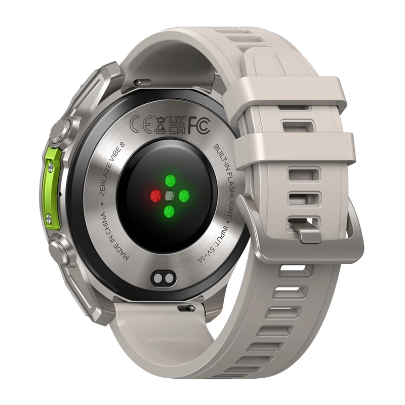 Praktische extra’s zijn onder meer een ingebouwde LED‑zaklamp, muziek‑ en camera‑bediening, weer, alarm en activiteitsherinneringen. Met de FitCloudPro app krijg je gedetailleerde analyses en extra wijzerplaten. Vibe 8 is gemaakt om lang mee te gaan – en jouw tempo bij te houden.