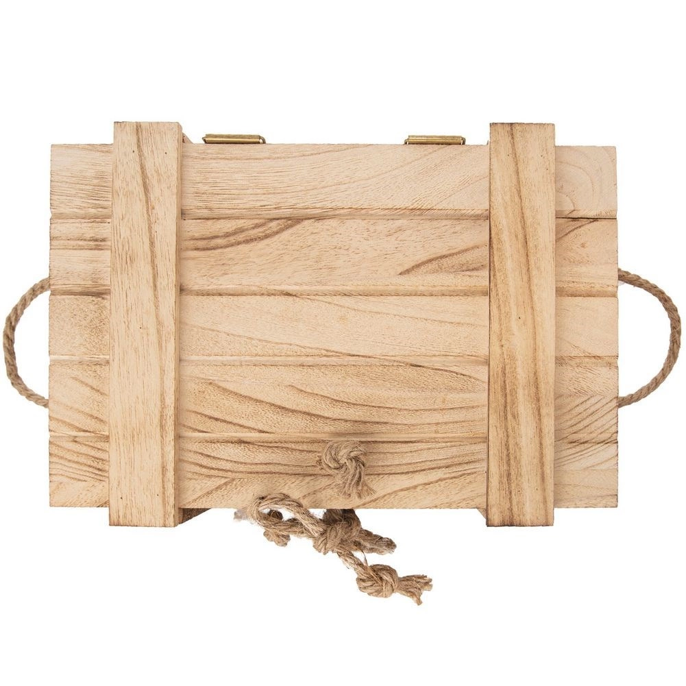 De kist is ook geschikt als originele cadeauverpakking – de ontvanger kan de box ook na het uitpakken blijven gebruiken. De praktische touwgrepen aan de zijkanten zorgen voor gemakkelijk dragen van plek naar plek.