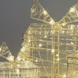 Netvoeding met een kabel van 5 m maakt de plaatsing gemakkelijk en de IP44-bescherming zorgt voor weerstand tegen weersinvloeden. De cadeaus kunnen tot 47 cm onderlinge afstand van elkaar worden geplaatst, zodat je precies de scene creëert die je wilt – van subtiel accent tot opvallend middelpunt.