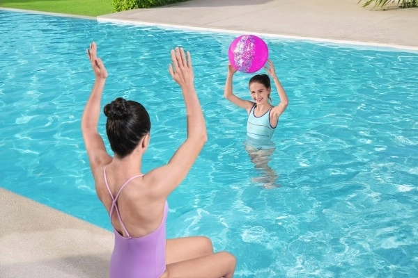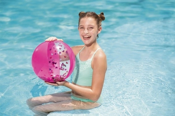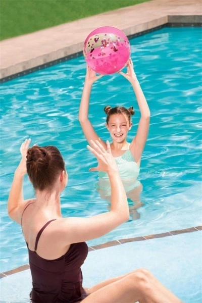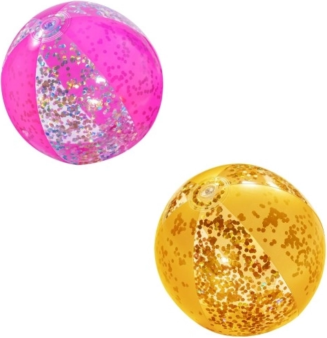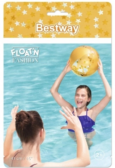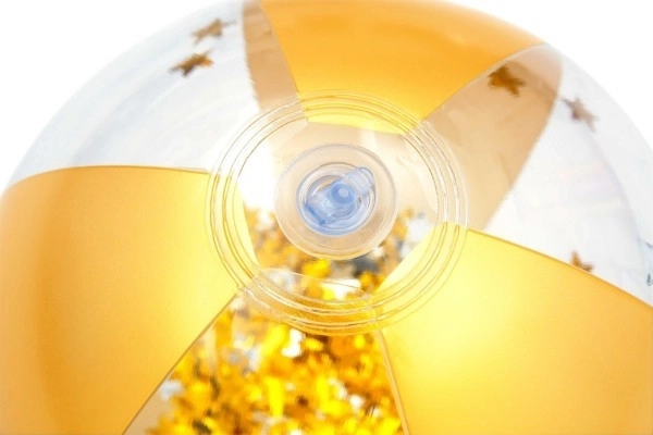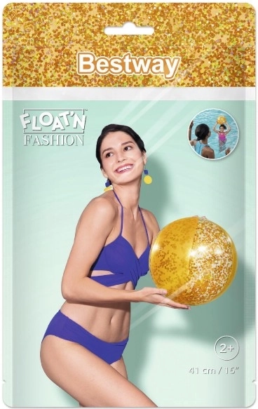 Elegante brokaat strandbal Bestway brengt veel plezier in je vrije tijd. Deze gouden bal is gevuld met glinsterend brokaat dat tijdens het spel vrolijk ronddwarrelt en schittert.