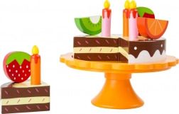 De houten verjaardagstaart met fruit van het merk Small Foot is perfect voor elk kinderfeestje. Interactief speelgoed laat kinderen spelen met de afzonderlijke stukken fruit, die met stokken zijn bevestigd en eenvoudig verplaatst kunnen worden. Kaarsen en decoraties geven de taart een authentieke uitstraling en kinderen kunnen een echte verjaardagsfeestje naspelen.