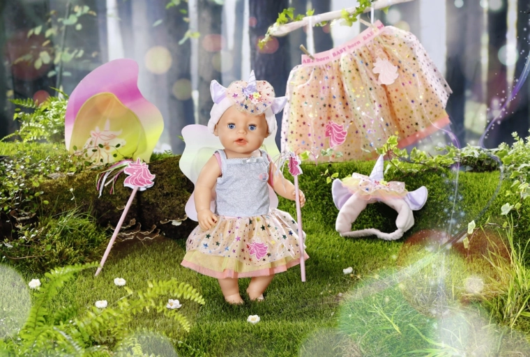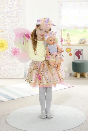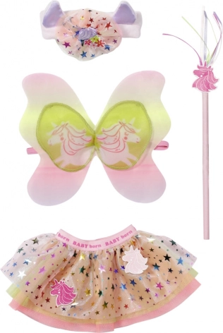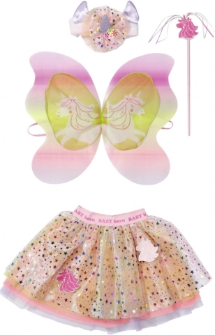 De set bevat prachtige tule rokjes versierd met glinsterende steentjes en eenhoornapplicaties, die het meisje en haar pop een schitterende, betoverende uitstraling geven. Haarbanden met schattige oortjes zijn aangevuld met een eenhoornhoorn en geven elke meid een magische look. De magische toverstaf met eenhoorn en kleurrijke franjes maken deze sprookjesachtige verkleedset helemaal af. Voor het perfecte effect hebben beide prinsesjes vleugels in pastelkleuren.