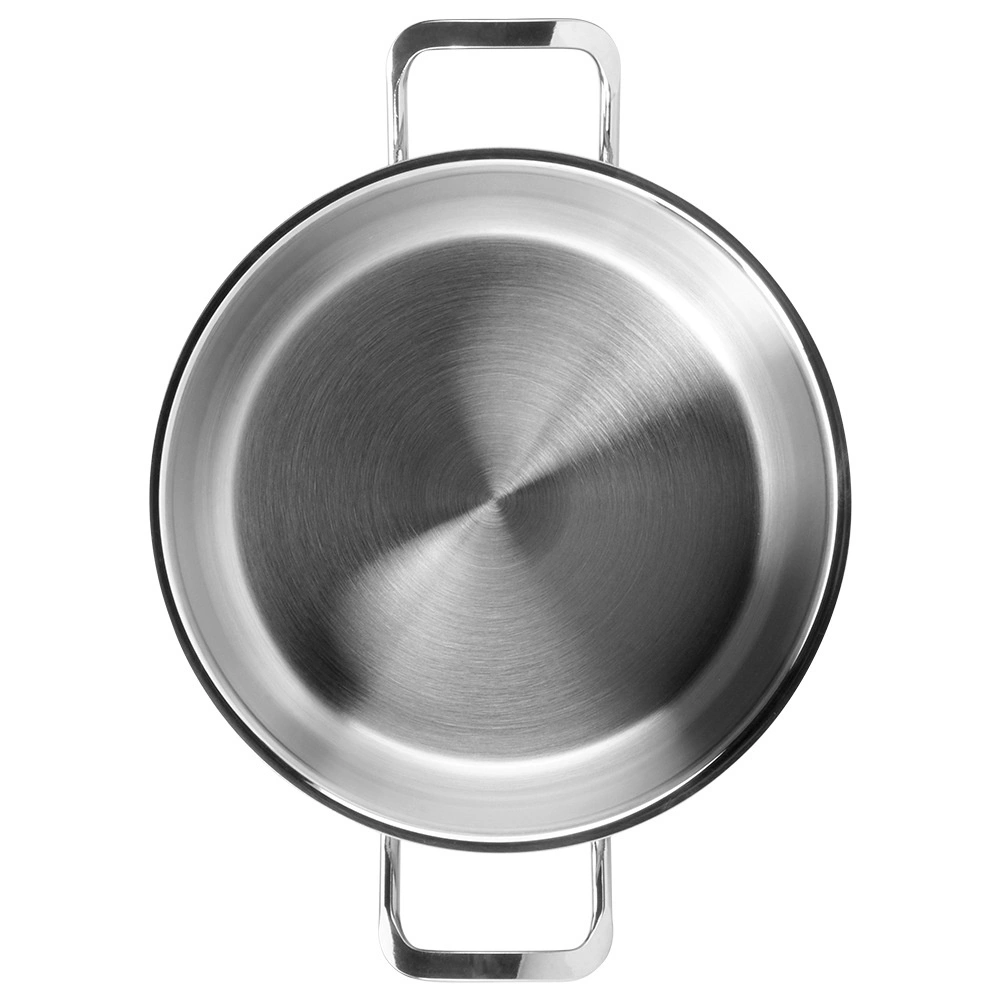 De speciale meerlagige akutermische bodem slaat warmte uitstekend op en verdeelt deze gelijkmatig, zodat je energiezuinig kookt met minder vet – zonder onnodig verlies van vitaminen en mineralen. Comfortabele handgrepen vergemakkelijken het hanteren en het meegeleverde roestvrijstalen deksel ondersteunt snel en gelijkmatig koken.