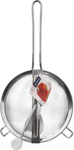Praktische en duurzame hulp voor dagelijks koken. De passeerzeef van hoogwaardig roestvrij staal blinkt uit door een stabiele constructie, een comfortabele handgreep en haken voor veilige plaatsing op een kom of pan. Scheidt moeiteloos pulp van pitten en schillen en creëert een fijne, egale puree.